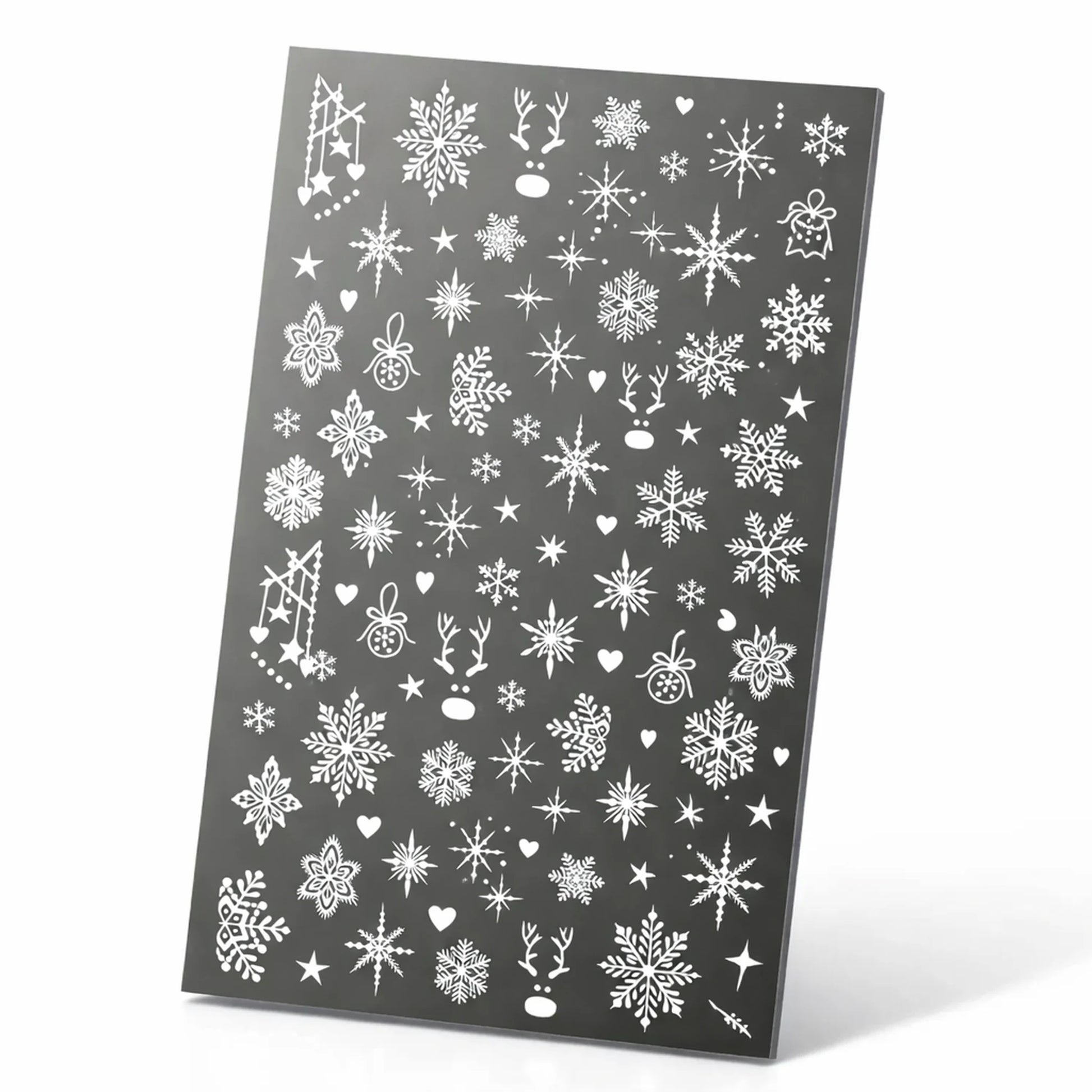 Winter Romance 3D to zestaw czterech arkuszy świątecznych naklejek na paznokcie utrzymanych w romantycznym, zimowym stylu. Wzory inspirowane motywami śnieżynek, choinek oraz świątecznych dekoracji tworzą spójną, elegancką stylizację o wyjątkowym, sezonowym charakterze.